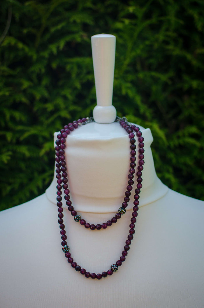 Een andere verfijnde look voor jou en je kleine dame wordt geleverd met deze edelsteenketting met fantastische bordeauxwijn - bordeauxrode agaten, verfraaid met zwarte kristallen.