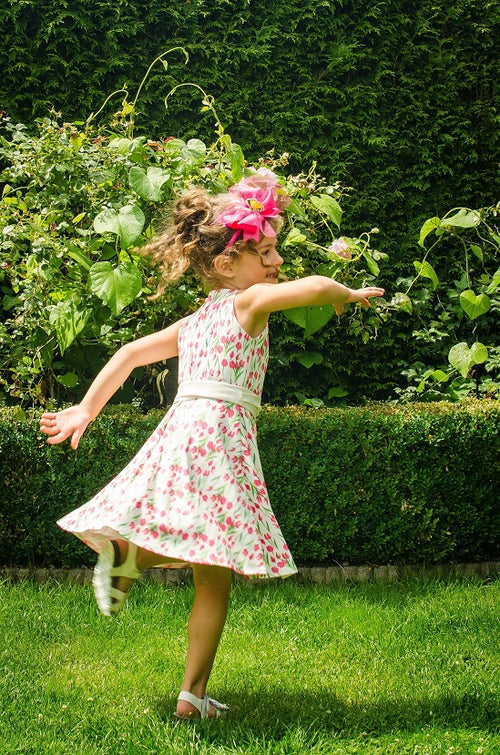 This sleeveless matching dress features a court neckline and a gently flared skirt. You and your little lovely will be garden party perfect all day. It’s a comfortable frock made up in a delicate tulip print which can be easily worn dressed up with accessories or toned down with sneakers or sandals and a sunhat.