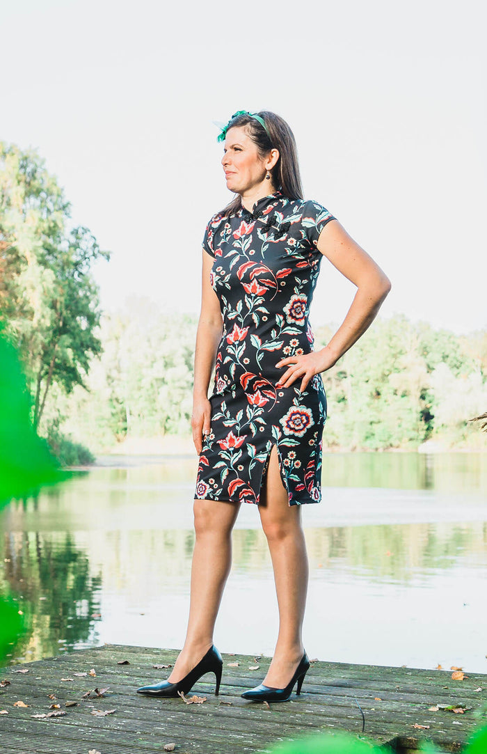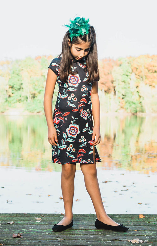 We houden gewoon van deze levendige bloemenprint cheongsam met zijn klassieke zwarte kikker sluitingen - dit keer op een iets open raam detail boven de buste. Aansluitende kokerrok komt met een split die de jurk compleet maakt! U kunt uw mouw- en roklengte aanpassen en de rok kan A-lijn of potlood zijn. Niet alleen mooi, maar ook behoorlijk anders! Perfect voor een chique evenement met je schattige mini-me.