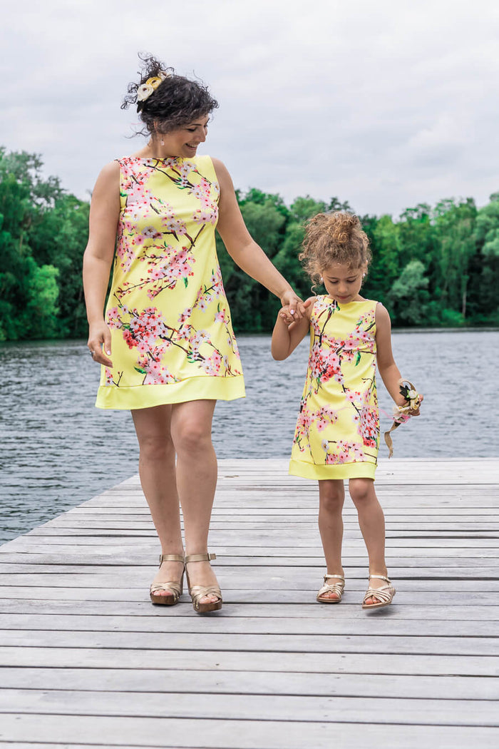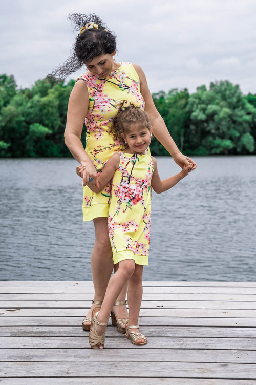 Zie eruit als een zonnestraaltje samen met je lieve kleine dame! De felgele kleur en schattige bloesemprint geven een speelse twist aan deze klassieke stijl. Draag met een paar pumps voor een chique gelegenheid, of ga samen voor een paar zomerse slingback sandalen. Jij en je mini-me zullen twinning naar een heel nieuw niveau tillen in deze mooie jurk.