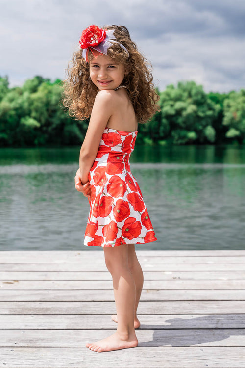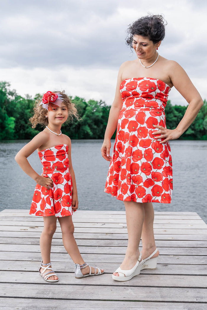 Regen of zon, jij zult deze zomer zeker stralen in deze prachtige rode klaproos strapless jurk! Deze aantrekkelijke twinningset is verkrijgbaar in vele levendige opties. Het zal zeker het hart van je dochter stelen, en ook van vele anderen ;) Draag het samen naar een feestje en rock!