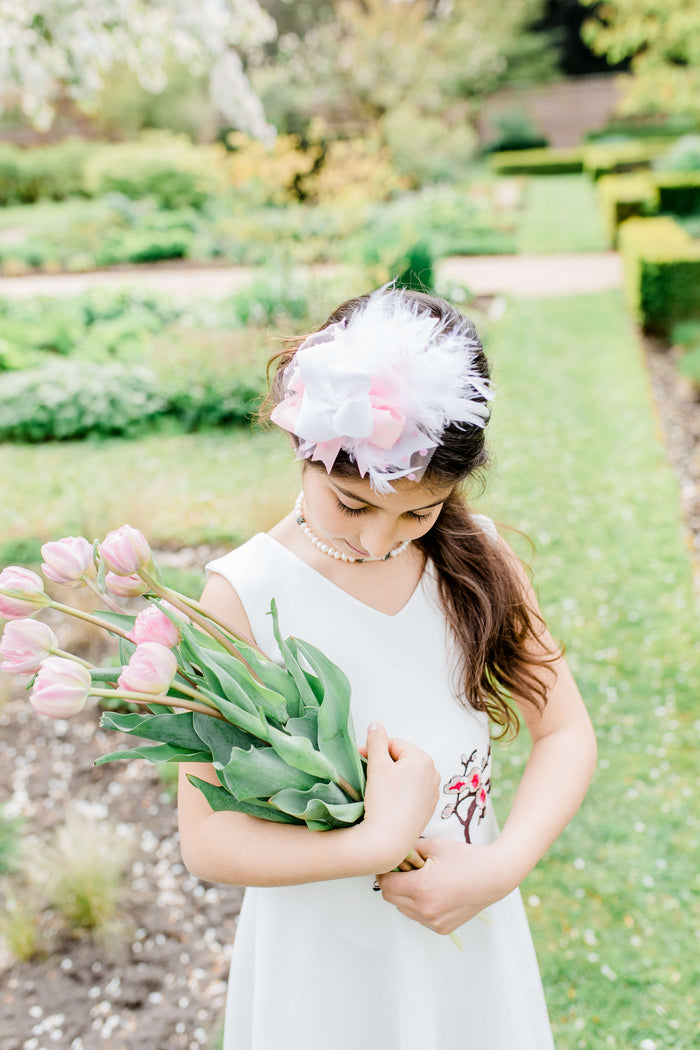 We have beautiful accessories to match every style in the shop for mommy and daughter, including beautiful hair ornaments and stunning semi-precious gemstone necklaces that will go brilliantly with this style.