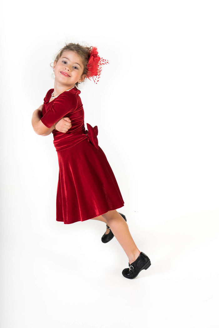 Perfect for an ultra special occasion, these sweet matching velvet dresses are sure to impress! Little Miss’ features a crew neck, a gently flared skirt with a sweet tulle peeping from under the hem and a waistband with a pretty bow at the back.
